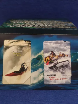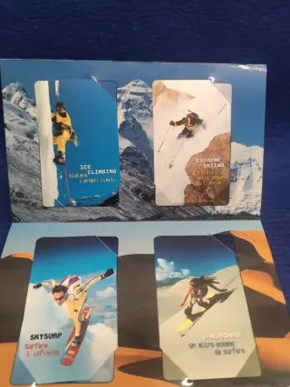 Collezione di schede telefoniche a tiratura limitata 70.000 mila pezzi Schede telefoniche usate perfetto. OCR perfetto. - Edizione Sensazioni Estreme. - Include schede a tema Kayaking e Rafting. - Design unico e accattivante. - Kayaking emozioni rapide - Rafting a bordo degli stati d'animo - ICE Climbing scalare i propri limiti - Extreme Skiing la pista non si segue. Si traccia - Skysurf surfare l'infinito - Sandboard un altro oceano da surfare - Bungee Jump tuffo nell'adrenalina Disponibili 2 folder completi