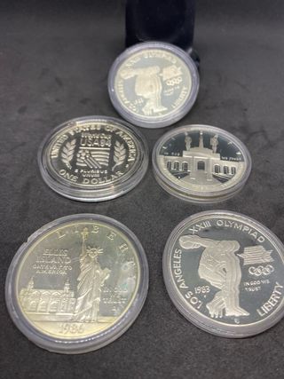 Lotto di 5 monete commemorative USA in argento. SUPERPREZZO 15% dotto il valore a argento - Moneta Ellis Island Gateway to America 1986. - Moneta XXIII Olympiad Los Angeles 1983. - Moneta World Cup USA 94 One Dollar. - Moneta XXIII Olympiad Los Angeles 1983 - Moneta XXIII Olympiad Los Angeles 1984 Prezzo inferiore al valore argento Monete in capsula dí protezione Ottimo investimento al pari di once o 500 lire