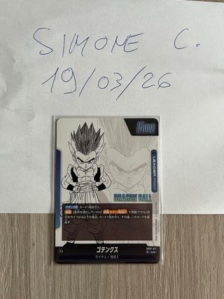 Carta Awaken di Gotenks dal set Dragon Ball Super SB02-017. - Carta Leader Back. - Potenza base 20000. - Effetto: Attacco: Pesca 1 carta. Attivazione: Main (una volta per turno) Se in questo turno hai usato un'Extra con le caratteristiche Saiyan e Terrestre, in questo turno, il potere di questa carta aumenta di +15000. - Personaggio: Gotenks. - Caratteristiche: Saiyan / Terrestre.