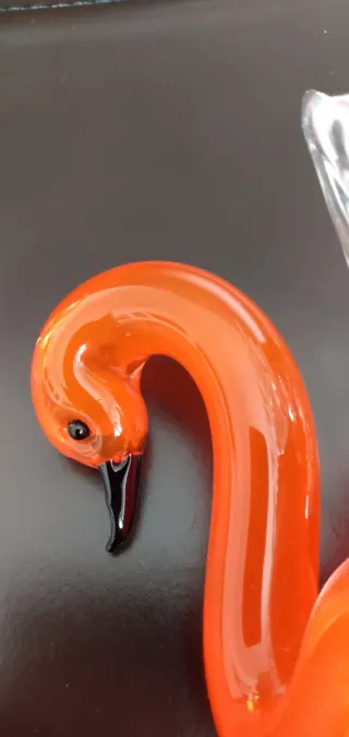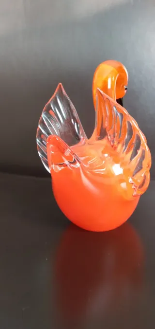 Elegante cigno in vetro di Murano, realizzato dalla vetreria La Murrina. Lavorazione accuratissima. - Colore rosso/arancione brillante, occhi e becco neri, ali vetro neutro Firmata alla base . Dalla mia collezione personale. Tutt' ora in produzione su ordinazione al costo di circa 250€. Cm 14h x 13px 12l Condizioni eccellenti