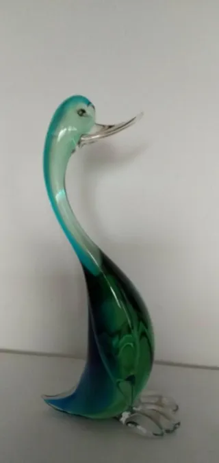 Deliziosa papera o anatra in vetro di Murano . Colori spettacolari dal turchese allo smeraldo . Cm. 28h x 13p x 10l. - Colori sfumati dal verde al blu. - Design artistico e raffinato. Insignificante e invisibile difettino alla punta di un' ala. Invisibile, si sente al tatto Forse di lavorazione. Parte della mia collezione personale