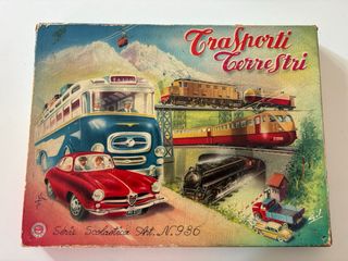 Set di timbri vintage Trasporti Terrestri. - Serie Scolastica Art. N. 936 - Marca: MULLER PRINT MILANO - Illustrazione di mezzi di trasporto terrestri