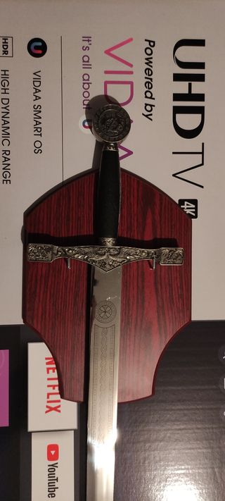 bellissima riproduzione della spada Excalibur in ottime condizioni con scudetto per appenderla, dimensioni in foto