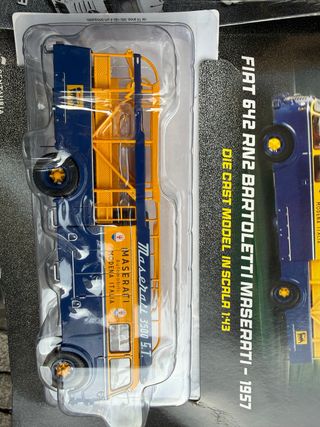 Modellino die-cast in scala 1:43 del FIAT 642 RN2 Bartoletti Maserati del 1957. - Dettagli fedeli all'originale. - Livrea blu e gialla. - Scritta Maserati Automobili Modena Italia sul fianco.