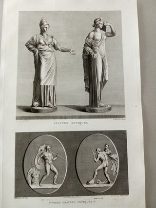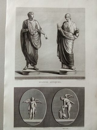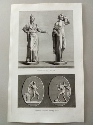 Incisione Mongez - Giunone e Musa Statue e Cupido
