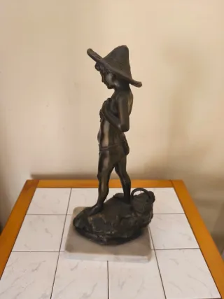 Bellissima scultura in bronzo raffigurante un ragazzo pescatore - Materiale: bronzo - Base in marmo