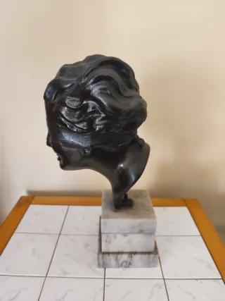 Scultura in bronzo raffigurante una dea bendata. - Base in marmo. - Dettagli curati.