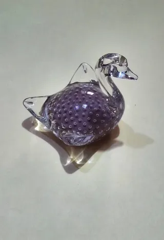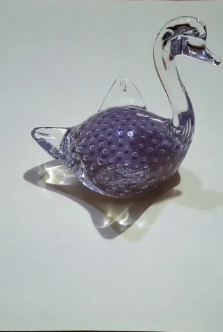 Bellissimo cigno in vetro di Murano, con un'elegante finitura trasparente e dettagli interni in colore viola. - Materiale: Vetro di Murano - Colore interno: Viola - Design: Cigno