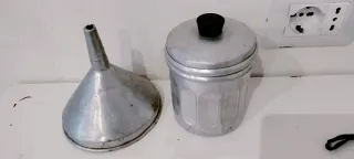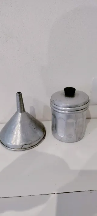 Set composto da due pezzi da cucina un imbuto ed un barattolo in alluminio ideali per allestimento