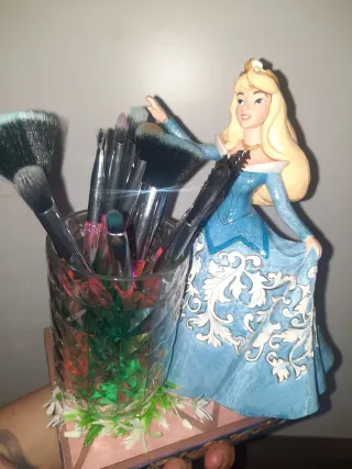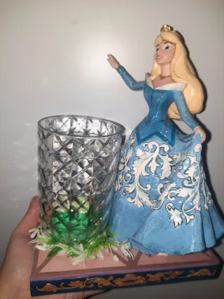 Portacandele Disney Traditions con la Principessa Aurora. - Figura di Aurora in abito azzurro glitterato. - Dettagli floreali bianchi sull'abito. - Base decorata con elementi naturali. Creata a mano nei minimi dettagli