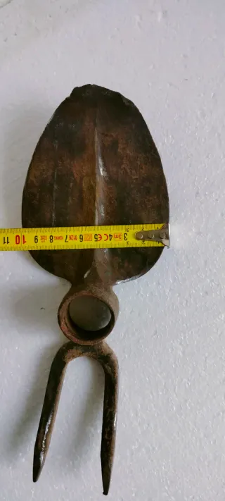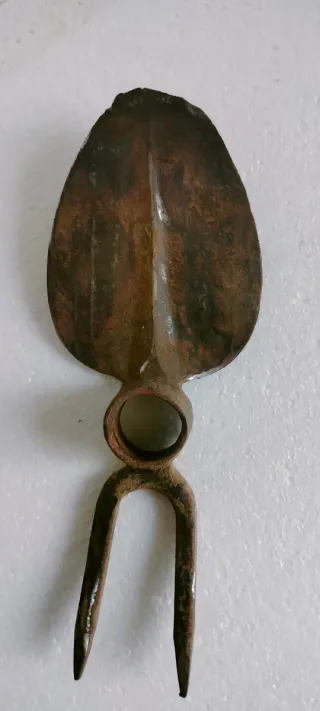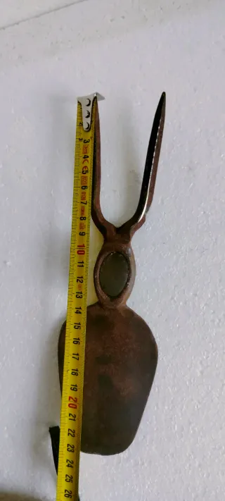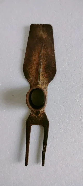 Attrezzo agricolo antico, una zappetta con una piccola forca integrata.