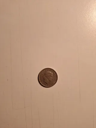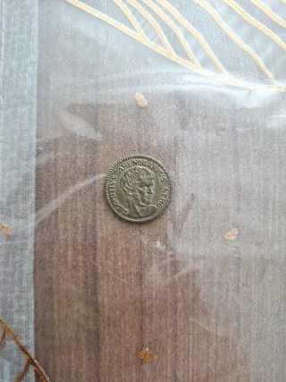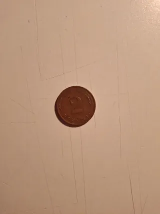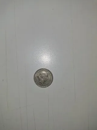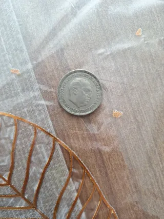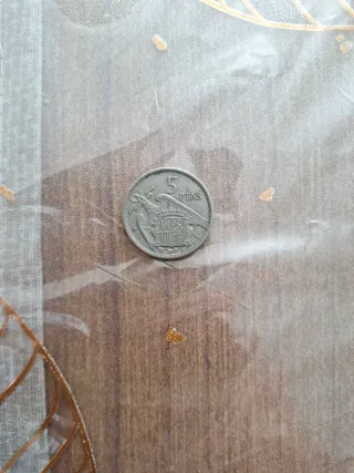 Moneta da 5 pesetas spagnole del 1957. - Dritto: Aquila bicipite con stemma. - Rovescio: Valore nominale e anno.
