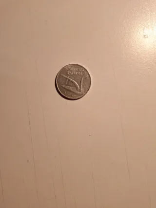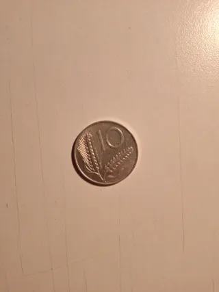 Moneta da 10 Lire della Repubblica Italiana. - Dritto: raffigurazione di una spiga di grano. - Rovescio: raffigurazione di una spiga di grano.