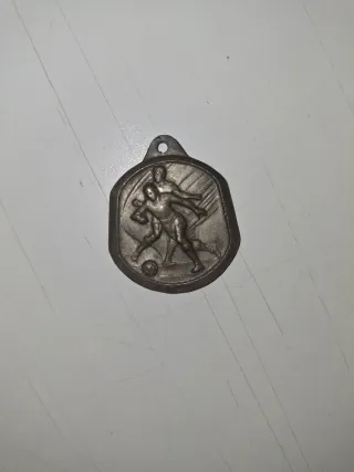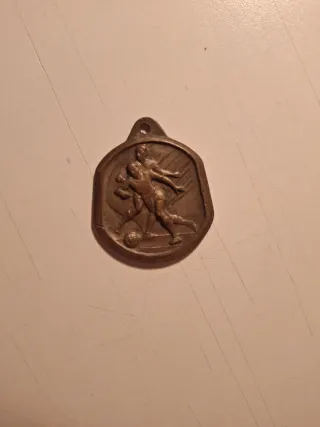 Medaglia in metallo con raffigurazione di due calciatori che si contendono un pallone. - Design sportivo. - Ideale per premiazioni o collezionismo. - Materiale bronzo.
