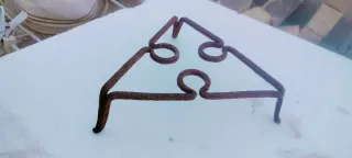 Bellissimo trepiedi antico in ferro battuto avente un bel disegno stupenda lavorazione manuale normale ruggine segni del passato