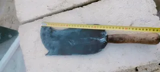 Mannaia antica con lama in ferro e manico in legno. - Lama larga e robusta. - Manico in legno grezzo.oggetto davvero Interessante normali segni del tempo
