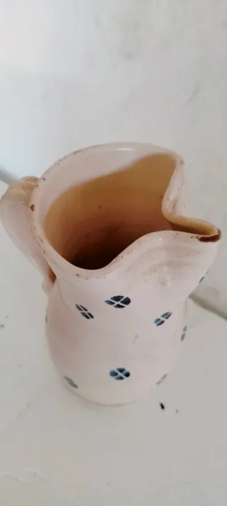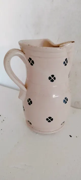 Brocca in ceramica con un grazioso motivo floreale. - Colore base avorio. - Decorazioni floreali nere. - Manico e beccuccio pratici.oggetto d'epoca