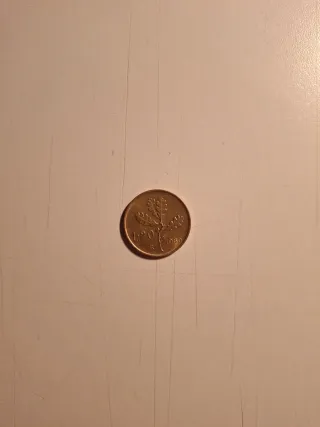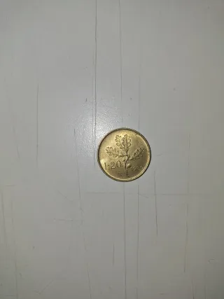 Moneta italiana da 20 Lire coniata nel 1980. - Diritto: Albero di quercia. - Rovescio: Valore 20 LIRE e anno 1980.