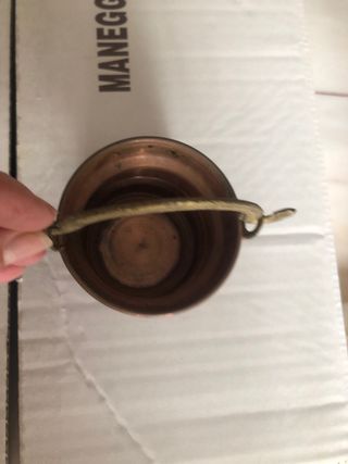 Piccolo vasetto decorativo in rame, con un manico in metallo dorato dallo stile anticato. - Materiale: Rame - Manico: Metallo dorato h 7 cm (senza manico) 14 con manico alzato diametro 8 cm