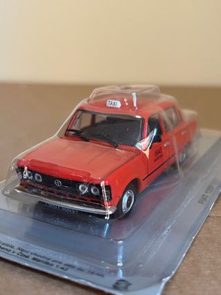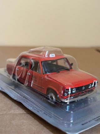 Modellino di un'auto Fiat 125 Taxi in scala 1:43. - Colore rosso. - Dettaglio TAXI sul tetto. - Targa WGT 60659. - Numero 8945 sul fianco.
