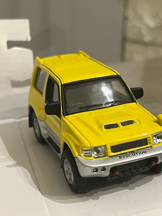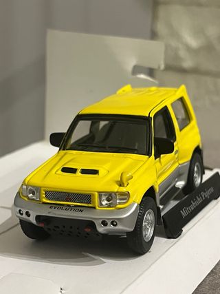 Modellino Mitsubishi Pajero Evolution in scala 1/43. Un pezzo da collezione per gli appassionati di fuoristrada. - Colore giallo vivace. - Dettagli fedeli all'originale.