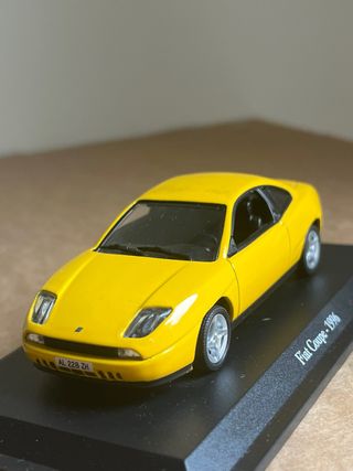 Modellino Fiat Coupé in scala 1:43. Presenta alcuni difetti come da foto. Modello raro - Colore giallo vivace. - Base espositiva nera inclusa. - Dettagli fedeli all'originale.