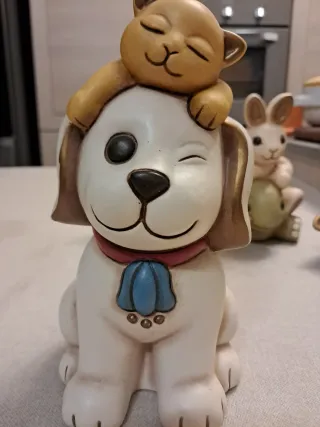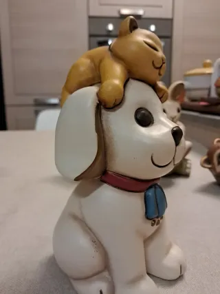 Deliziosa statuina Thun raffigurante un cane con un gatto appoggiato sulla testa. - Design unico e affascinante. - Perfetta per collezionisti e amanti degli animali.