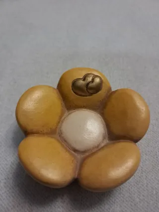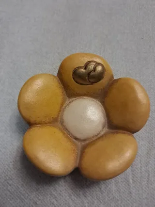 Delizioso fiore Thun in ceramica. - Design a forma di fiore con petali gialli. - Centro bianco. - Dettaglio di due cuori dorati sulla parte superiore.