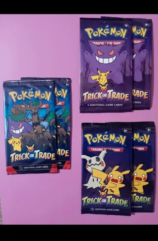6 booster dell'espansione di Halloween del tcg Pokemon "Trick or Trade" Le bustine sono sigillate e relative a 3 annate differenti 2022 x2 2023 x2 2024 x2 Perfetti per collezionisti da tenere sigillate o da aprire per gli artwork particolari con logo di halloween. Spedizione protetta in busta imbottita in 1 giorno lavorativo scrivere in privato per quantità maggiori