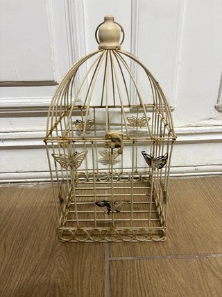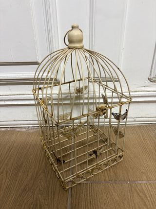 Lanterna decorativa in ferro battuto con un design a gabbietta e dettagli a forma di farfalla. Lanterna in ferro battuto apribile antica altezza 37 cm, larghezza 20 cm per 20 cm - Materiale: Ferro battuto - Colore: Bianco anticato - Decorazioni: Farfalle applicate