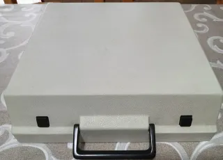 Macchina da scrivere OLYMPIA in una valigetta. - Valigetta color crema. - Manico nero. - Pulsanti neri laterali.