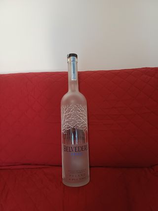 Bottiglia vuota di Vodka Belvedere da 3 litri. Perfetta per collezionisti o per riutilizzare creativamente. - Bottiglia in vetro satinato. - Capacità: 3 litri. - Marchio: Belvedere.