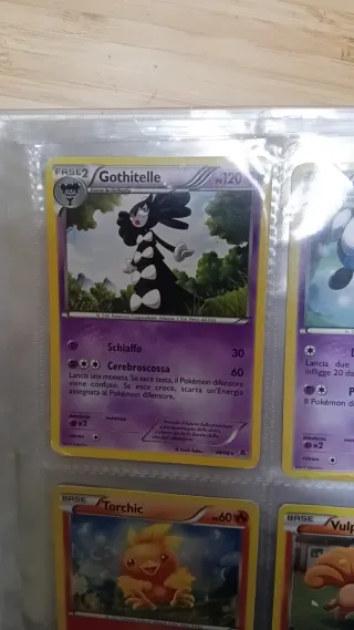 Set di carte Pokemon in perfetto stato, conservate molto bene Se volete acquistarle singolarmente Scrivetemi e fate un'offerta GARANTISCO SPEDIZIONE ENTRO 24h - Gothitelle - Gotherika - Gothita (un poco rovinata) - Torchic - Vulpix - Fennekin - Scraggy - Dedenne