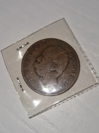 Moneta da 2 Lire del Regno d'Italia, anno 1963. - Zecca T. - Rara. - Dritto: Ritratto di Umberto I. - Rovescio: Stemma sabaudo coronato.