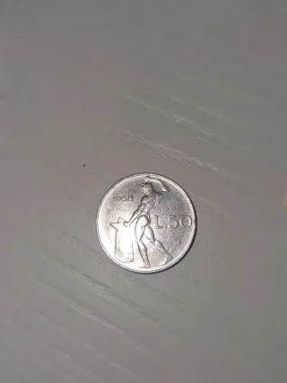 Moneta da 50 Lire del 1958. - Valore nominale: 50 Lire - Anno di conio: 1958 - Design: figura maschile con incudine