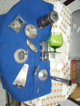 Collezione di oggetti vintage, alcuni dei quali placcati Argento. - Oggetti decorativi in stile classico. - Materiali misti, tra cui metallo placcato argento. - Ideali per collezionisti o per aggiungere un tocco d'epoca all'arredamento. VENDITA IN BLOCCO