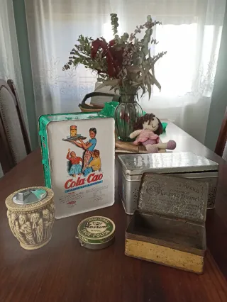 Lote vario di antichità e oggetti vintage, ideale per collezionisti, decorazione, scenografia o amanti di pezzi con storia. Include scatola in ceramica stile marocchino con coperchio metallico, vecchio specchio, strumenti e chiavi antiche, campanellino Sant Miquel del Fai, miniature in porcellana, cestini di vimini, figura decorativa, seggiolino rustico, cavatappi vintage, piccolo Bambin Gesù e altri oggetti curiosi (vedi foto). La scatola marocchina ha un piccolo urto interno, appena percettibile e non visibile dall'esterno. Il resto, in buono stato in base all'antichità. Si vende tutto il lotto insieme. Ideale per decorazione vintage.