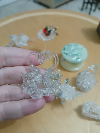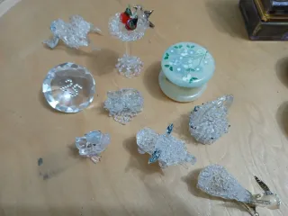 Lotto composto da 7 oggetti vintage in vetro - Piccolo tavolo con ciliegie - Diamante grande con numeri Animali vari Pianoforte rotto(rotto il piedino ma si può incollare) 1 piccolo portagioie in alabasyro di Volterra, Italy Prezzo per tutto