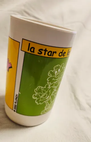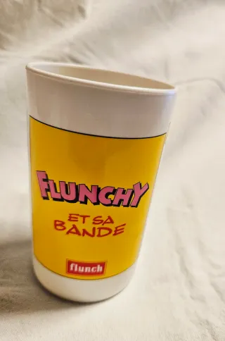 Gadget pubblicitario vintage della catena dei ristoranti francese Flunch, facente parte della collezione "Flunchy et sa bande " Questo articolo veniva spesso distribuito come regalo nei menu per bambini ( Menu Flunchy) ed era estremamente popolare in Francia tra la fine degli anni 90 e l'inizio degli anni 2000,diventando veri e propri oggetti di culto per la generazione dell'epoca. Flunch e una nota catena di ristoranti self-service. "Flunchy " e la mascotte ufficiale del brand, spesso accompagnata dalla sua "banda" di amici in varie avventure a tema. Le foto sono parte integrante della descrizione.