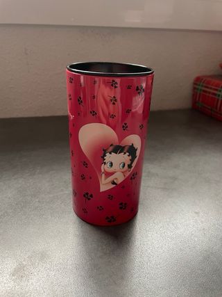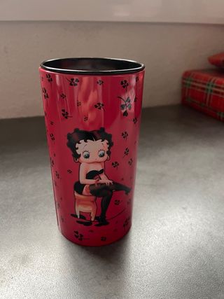 Hucha originale con design di Betty Boop. Colore rosso vibrante. Stampa di trifogli neri. Figura di Betty Boop seduta. Stile 2yk. Come nuova. Perfetta per conservare i tuoi oggetti più preziosi o come hucha. #yk2 #yk2style #2000 #huchavintage #vintage #bettyboop