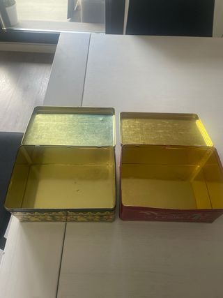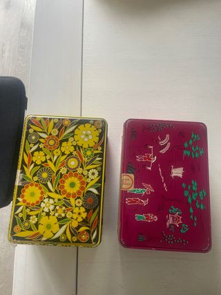 Lata vintage con design. Mai usate. Perfette come decorazione o per conservare oggetti.