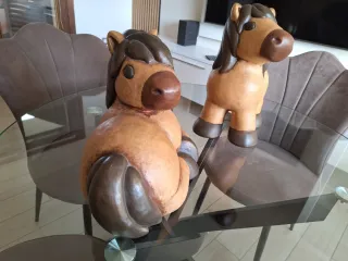 Propongo splendida coppia di statue originali THUN, pezzi vintage autentici, oggi rarissimi e praticamente introvabili sul mercato. Le statue raffigurano due cavallini dallo stile inconfondibile THUN, realizzati con grande cura artigianale e caratterizzati da linee morbide, colori caldi e dettagli iconici che le rendono opere di grande fascino e valore collezionistico. 🔹 Condizioni: perfette 🔹 Epoca: vintage 🔹 Originalità: 100% THUN 🔹 Rarità: altissima, fuori produzione da molti anni 🔹 Stato di conservazione: eccellente Si tratta di pezzi di assoluta rarità. Oggetti destinati a rivalutarsi nel tempo e dal valore inestimabile.