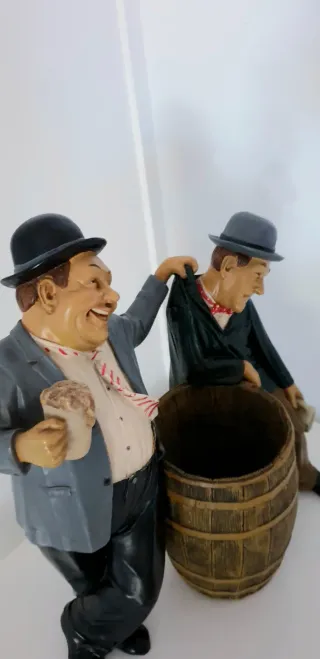 OLIVER HARDY (EL GORDO) STAN LAUREL (EL FLACO) FIGURA VINTAGE IN FIBRA DI VETRO PUÒ CONTENERE OGGETTI NEL BARILE. IN PERFETTO STATO E CONSERVAZIONE. MISURE: ALTO: 37 CM, LARGO: 37 CM, PROFONDO: 18 CM.