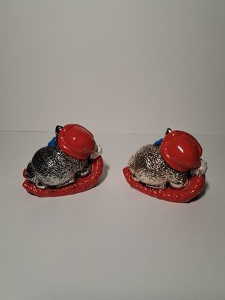 Lotto composto da 2 action figure della serie BuMega, Jade. - Personaggio 1: Creatura con corpo da centopiedi, zampe multiple e testa di leone. - Personaggio 2: Creatura simile a un armadillo con corna e zampe. - Colori vivaci: giallo, arancione, turchese e viola. Lotto di 2 Bumega del popolo dei Jade Action Figure Capruggine e Babbruco, personaggi 3D giocattolo simil gormiti giochi, ispirati alla fusione di 2 animali tra di loro. Action Figure di 6/7 cm. Personaggi rarissimi, pressoché introvabili. Condizioni come da foto, ottime. Ottima idea regalo per tutti gli appassionati di oggetti da collezione vintage. Ideale per tutti.