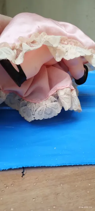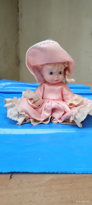 Deliziosa bambola da collezione, perfetta per gli amanti degli oggetti vintage. Anno 70 - Vestito rosa con pizzo. - Cappellino abbinato. - Capelli biondi.