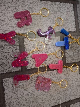 Portachiavi fatti a mano personalizzati, realizzati in resina epossidica con glitter scintillanti. - Ogni lettera è unica e decorata con cura. - Ideali come accessorio per chiavi o zaini. - Disponibili in diverse lettere e colori.