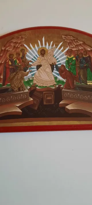 Bellissimo dipinto su tavola raffigurante Gesù e gli apostoli. - Opera d'arte religiosa. - Scene bibliche. - Stile iconografico.