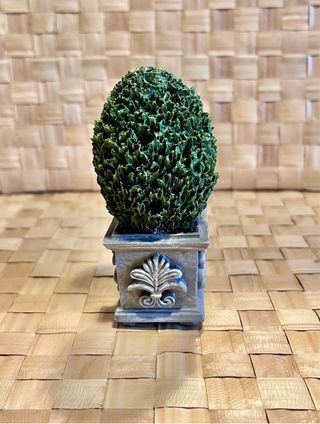 Vaso con arbusto decorativo sferico per giardino Dolls House. Fabbricato in resina che imita la pietra e le piante. Vaso con altezza totale di 9 cm perfettamente in scala per le Dolls House. In perfetto stile vittoriano non possono mancare nel giardino della vostra Doll’s House.