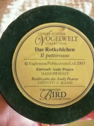 Delizioso pettirosso, parte della The Country Bird Collection. Dipinto a mano. - Dettagli finemente lavorati. - Base decorativa inclusa. - Perfetta per gli amanti della natura e del collezionismo.