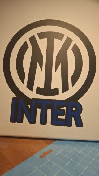 Quadro decorativo con il logo dell'Inter. - Stampa su tela. - Design con logo Inter e scritta INTER.